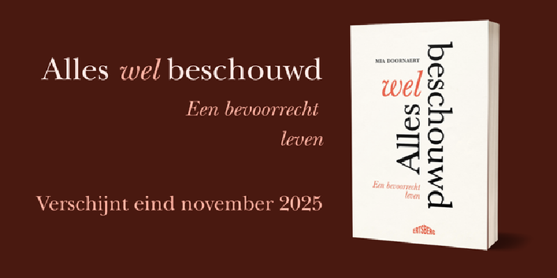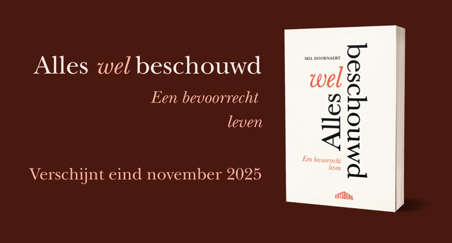 Mia Doornaert "Alles Welbeschouwd. Een bevoorrecht leven". 320 p. Date de parution: 24 novembre 2025. Ertsberg/Standaard Uitgeverij.